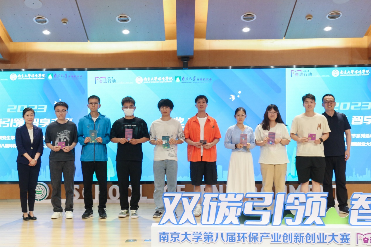 环境学院党委书记刘建萍和党委学生工作部副部长兼本科生院学生思想政治教育中心主任闻羽为在科创竞赛中深化指导和辛勤付出的学院教师叶林、韦斯、于南洋、潘旸、施鹏、张延扬、王瑾丰、李文涛颁发了科创育人导师证书。
