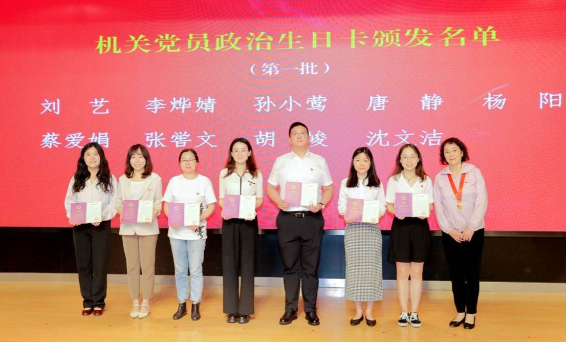 机关党委每年组织入党满五年、十年的机关党员集体过“政治生日”,引导党员不断筑牢信仰之基、补足精神之钙、把稳思想之舵。现场,获颁“光荣在党50年”纪念章的机关老党员代表分别为入党满五年、十年的党员代表颁发“政治生日纪念卡”。