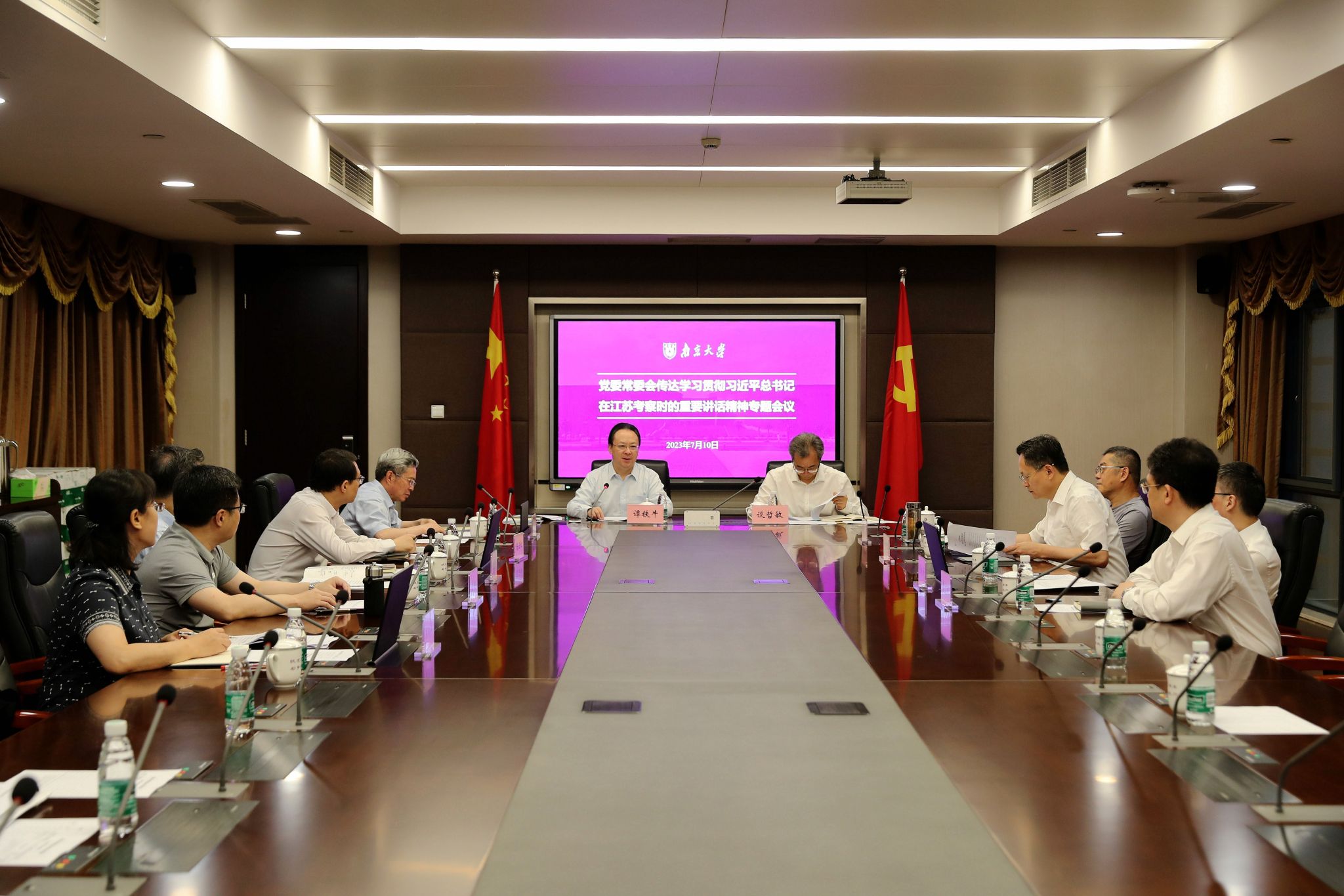 7月10日上午,校党委常委会召开会议,传达学习贯彻习近平总书记在江苏考察时的重要讲话重要指示精神,研究部署全校学习宣传贯彻工作。校党委书记谭铁牛主持会议并讲话。校长谈哲敏传达省委常委(扩大)会议精神。校领导班子成员交流学习体会。