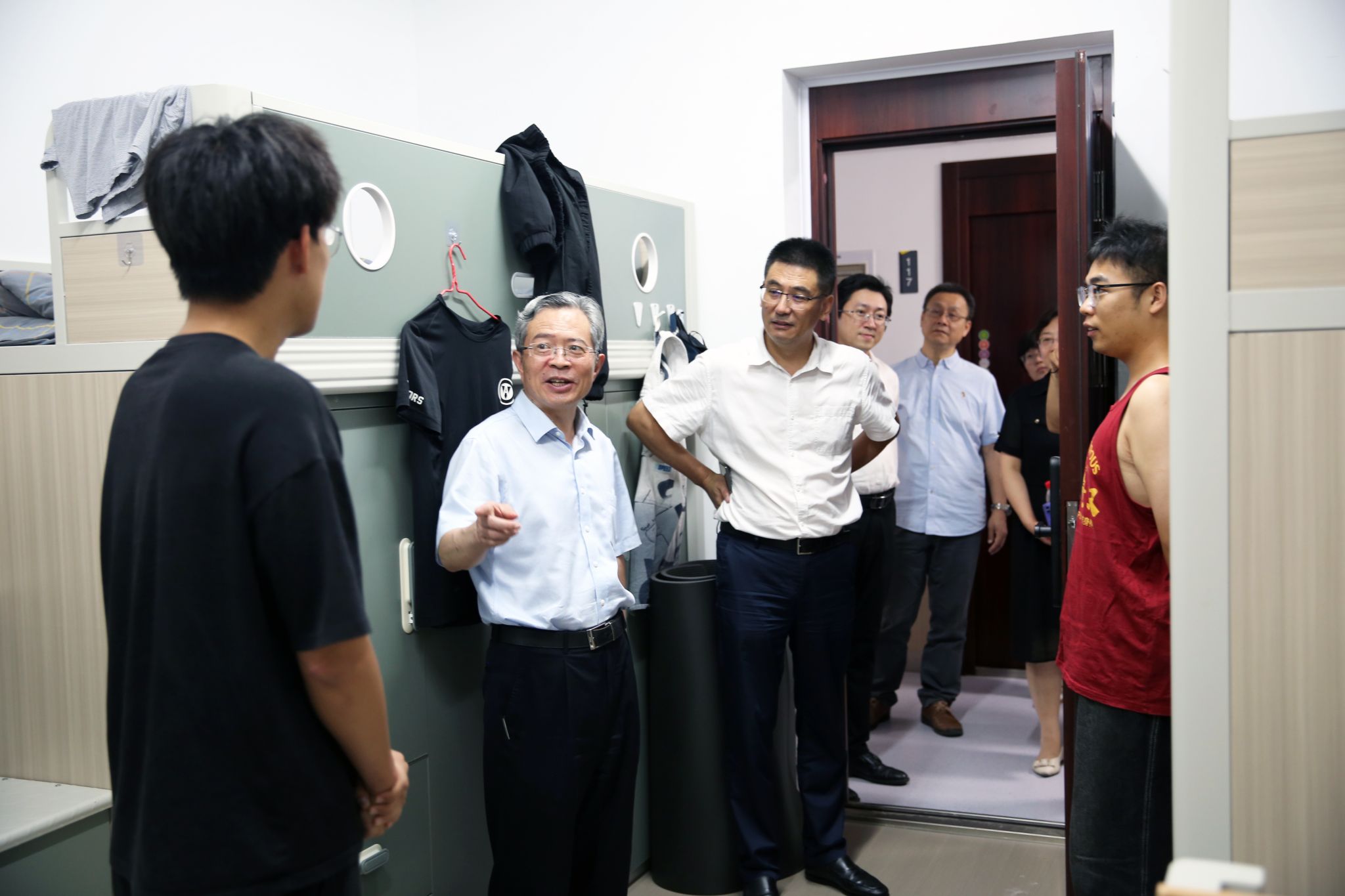 在陶园三舍,谈哲敏检查了洗衣房、活动室等宿舍公共区域情况,并在征得学生同意后,走进寝室查看环境设施。在得知两位新生就读于南赫学院,谈哲敏亲切询问“英文怎么样?课业能不能跟得上?”他勉励同学们珍惜在凯发和南赫学院的学习机会,再接再厉、勇攀高峰。据介绍,为更好融入学生提供服务,南园学生社区还设立了新生学院辅导员值班室,学院领导、辅导员、管理人员全部下沉社区一线,双节期间也将正常值班,为留校学生提供暖心服务。
