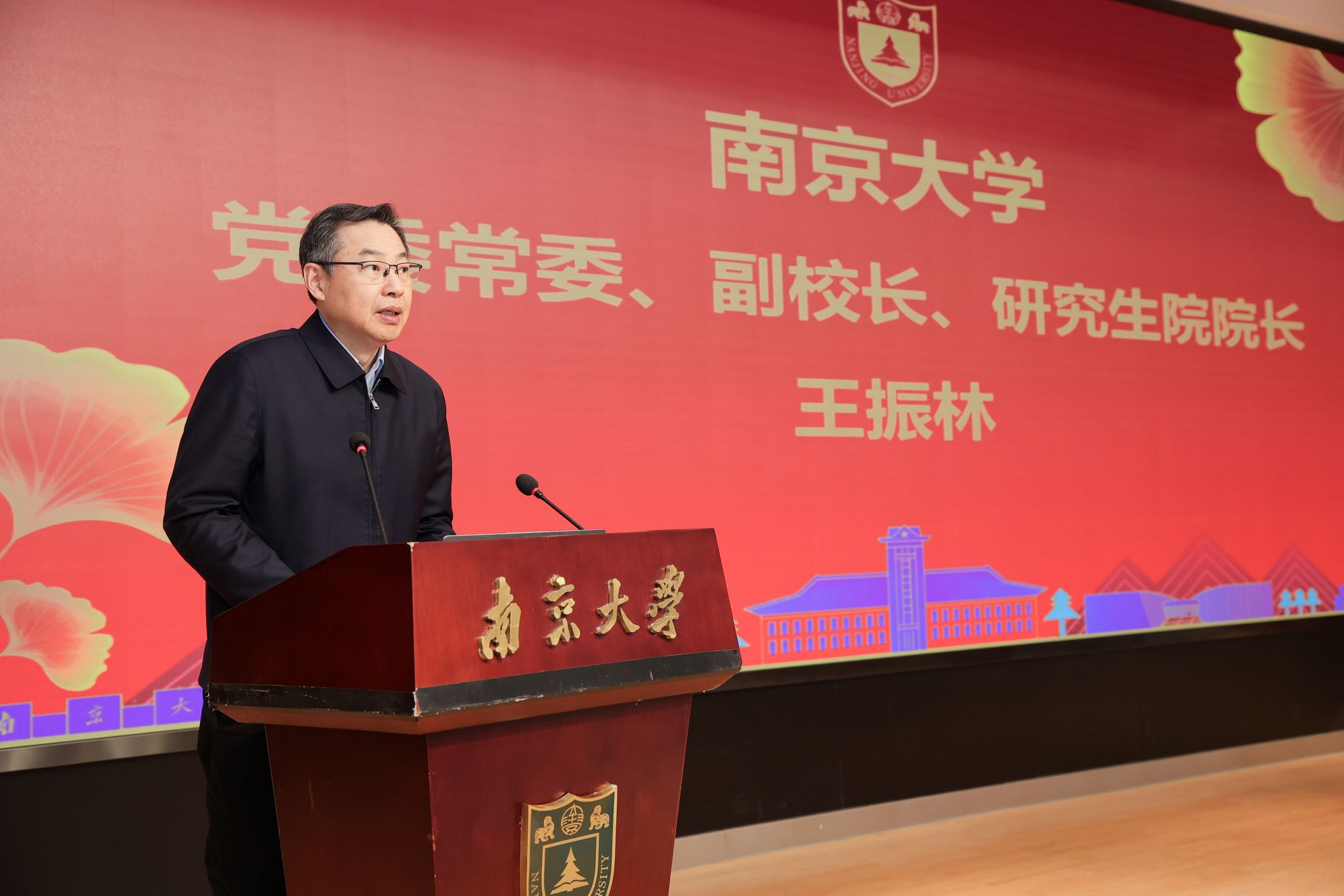 会议第一阶段为“主题报告”,由研究生副院长张亮主持,国家留学基金管理委员会出国留学选培部主任杨祥义、江苏省教育厅对外合作与交流处处长施蕴玉、国际合作与交流处处长李晓蓉、研究生院培养办公室主任王孝磊分别作报告。