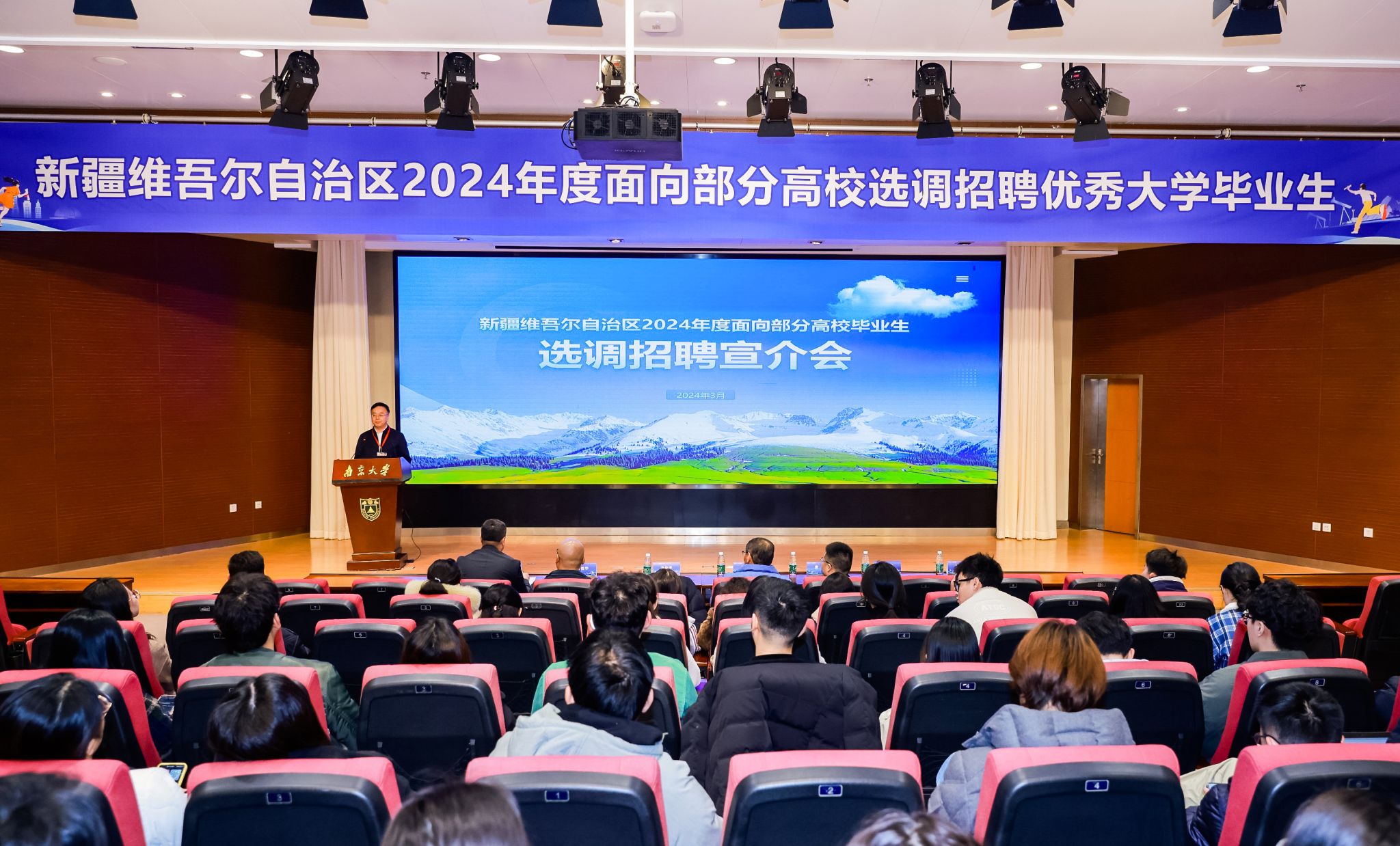 3月14日,新疆维吾尔自治区人民政府国有资产监督管理委员会党委委员、副主任汤仲平一行赴我校开展自治区2024年度面向部分高校选调招聘优秀大学生宣讲工作,副校长陆延青会见宣讲团并座谈交流。