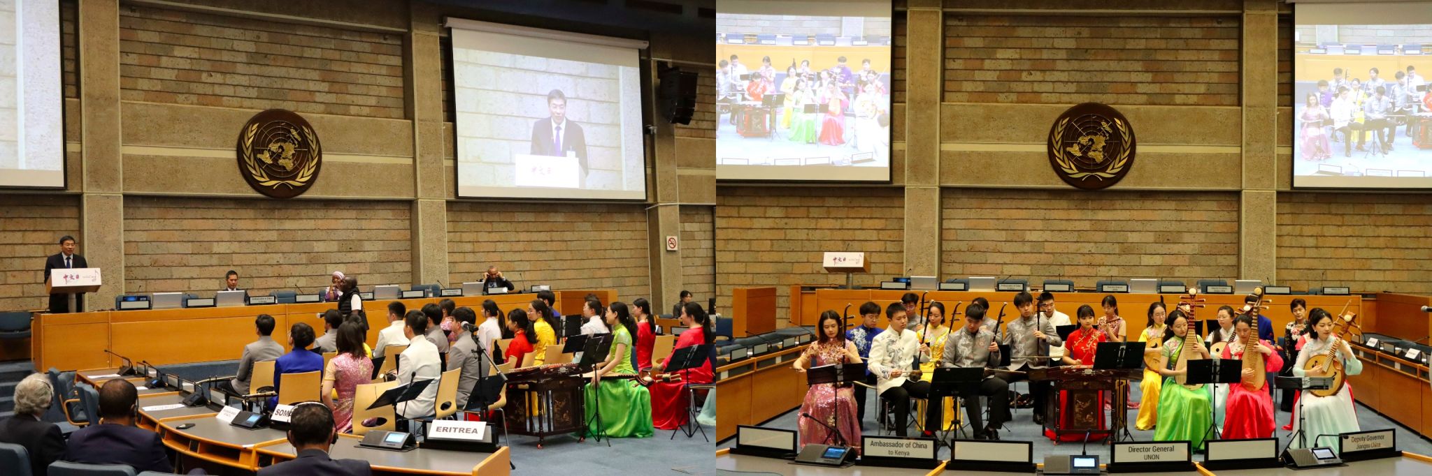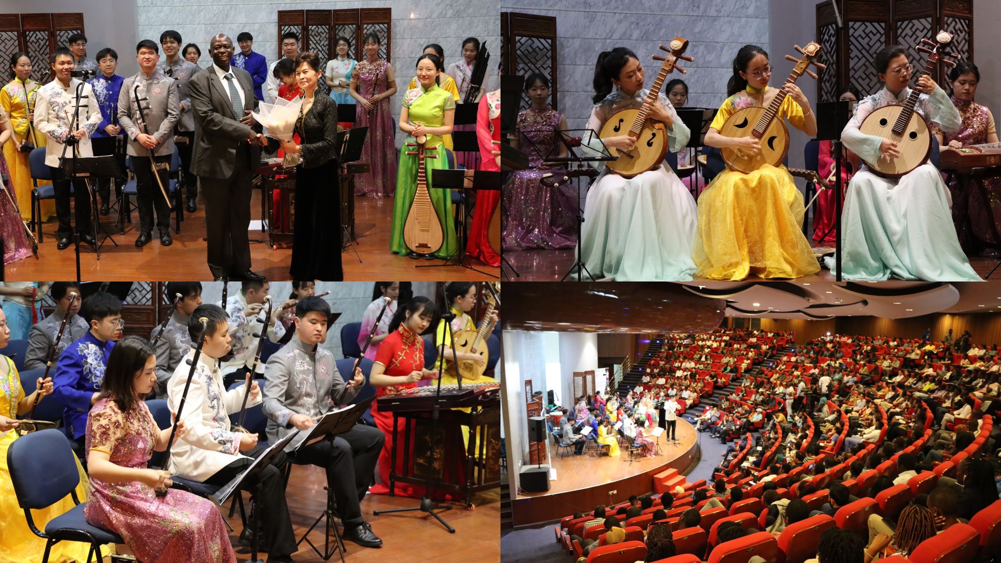 2024年是中华人民共和国成立75周年,也是“一带一路”倡议提出11周年,为深入落实习近平总书记重要回信精神,进一步增加中非之间文化交流,4月17日至21日,我校民族乐团赴联合国内罗毕办事处参加“国际中文日”活动,并在肯尼亚、埃及开展“中非互鉴,美美与共”主题巡演。联合国副秘书长班古拉,江苏省委常委、常务副省长马欣,中国驻肯尼亚大使周平剑,部分国家驻联合国的常驻代表,我校党委副书记陈云松出席联合国内罗毕办事处“国际中文日”活动。