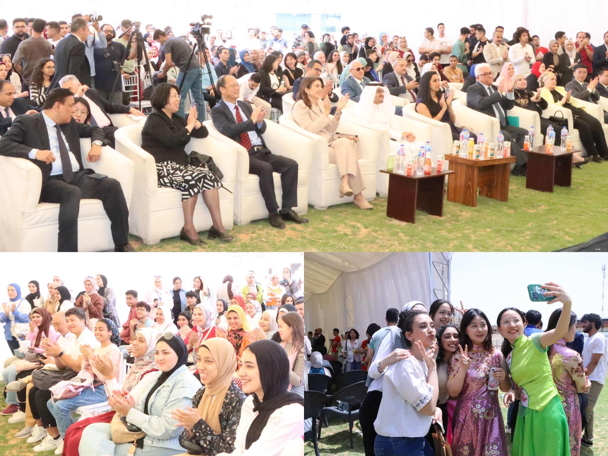 4月27日上午,民族乐团赴埃及中国大学参加由中国驻埃及大使馆和阿拉伯国家联盟联合组织的“国际中文日”系列活动。阿盟教育科研司司长法拉杰·阿吉米,埃及中国大学董事会主席卡里玛·阿布都勒·凯里穆,校长拉沙·库利,中国驻埃及大使馆教育公参卢春生等嘉宾,中外语言交流合作中心代表团,以及各界嘉宾、学生、民众等近千余人参加活动。