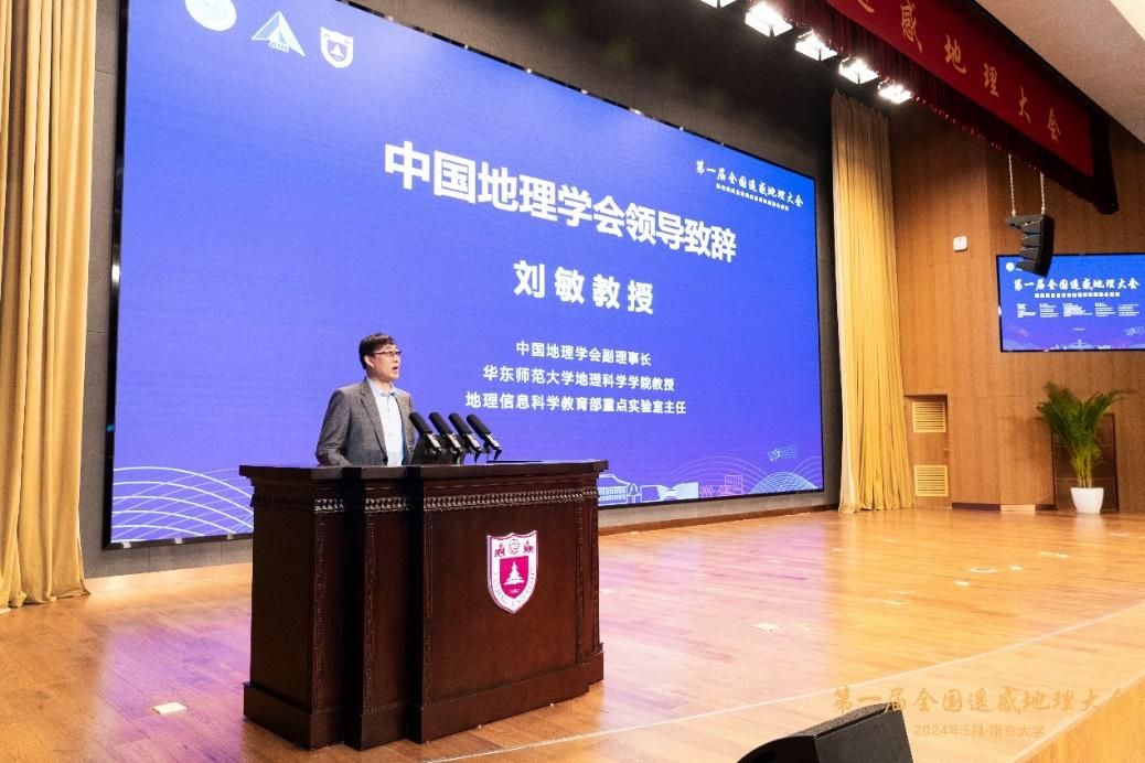 中国地理学会副理事长、华东师范大学地理科学学院教授刘敏教授致辞。刘敏教授代表中国地理学会对大会的顺利召开表示祝贺,介绍了中国地理学会环境遥感分会更名为遥感地理专业委员会的背景和意义,指出遥感地理的内涵更大,交叉性更强,是学科发展的需要,也是时代赋予的责任。面向未来,遥感地理领域学者需要聚力融合创新,进一步发挥融合交叉的学科优势,形成地理学的新质生产力,为美丽中国和国家高质量发展做出贡献。