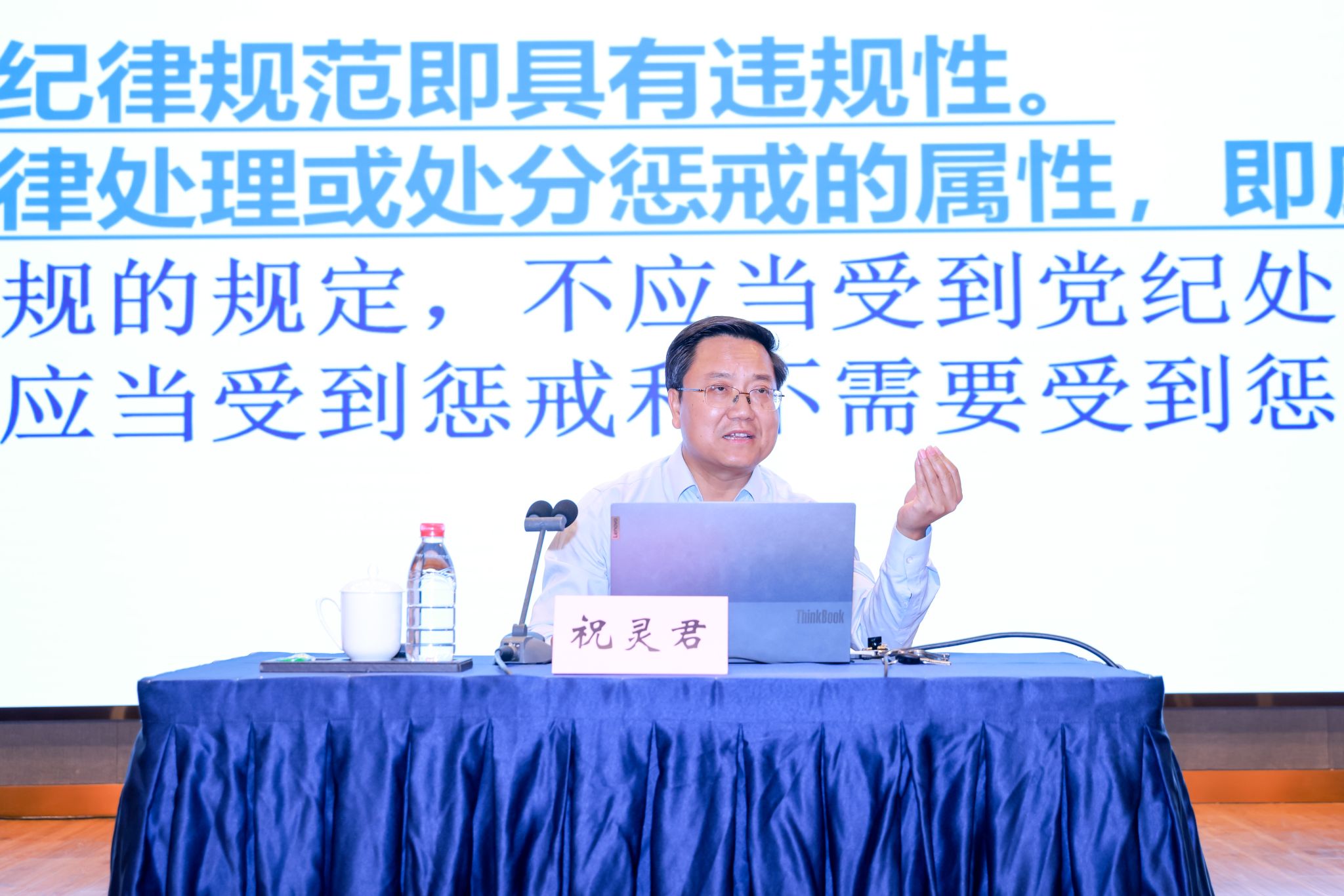 在专题辅导中,祝灵君首先围绕违纪行为的三大特征、《纪律处分条例》的五个版本及其诞生背景等基本常识进行了系统的科普,让“党规党纪严于国法”的概念进一步深入人心。在介绍中国共产党加强纪律建设的光荣传统和独特优势时,祝灵君完整回顾了从新民主主义时期、社会主义革命和建设时期一直到新时代党的纪律处分工作随着时代变迁不断发展革新的过程,特别从内容、理念、体系、重心、尺度等不同角度解析了新时代党的纪律处分工作的特点。