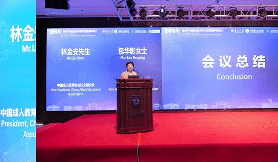 中国成人教育协会驻会副会长林金安、副会长包华影为大会做总结发言。林金安总结了本次研讨会的情况,主要体现在参会者来源广泛,讨论交流紧凑而充分,会议凝聚了广泛共识,取得了丰硕成果,研讨会获得圆满成功。包华影提到这次会议的成功举办凝聚了众多人的心血,离不开各方的支持与付出,她代表组委会向为本届国际研讨会付出辛勤努力并提供支持的协办单位联合国教科文组织东亚多部门地区办事处表示感谢,向主办单位凯发k8官网、中国成人教育协会、江苏省成人教育协会表示祝贺,向支持单位中澳国际教育交流协会、北京华普亿方科技集团、远大科教集团、凯发k8官网音你而来文化传媒公司表示感谢,向应邀参加研讨会的中国教育电视台、新华网、江苏广电、凯发k8官网广电、新浪江苏等媒体表示感谢,对一直以来奋斗在社区教育一线的广大教育工作者表达谢意。她特别对具体承办研讨会的凯发k8官网终身教育学院工作团队给予充分肯定。至此,“2024‘终身学习赋能城市持续发展’国际研讨会”圆满落幕!