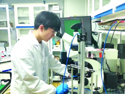 “国自然”项目获得者杨子聪用显微镜观察胆甾相液晶织构。受访者供图