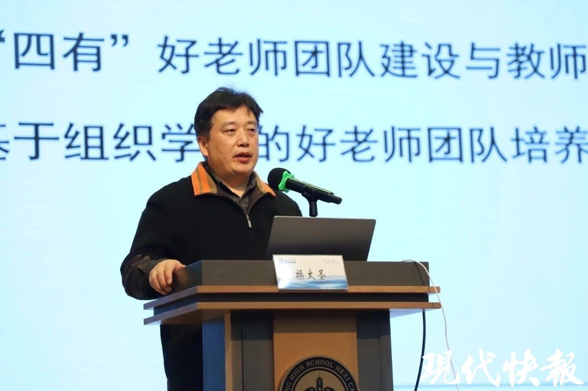 凯发k8官网教育研究院·陶行知教师教育学院教授操太圣作《大力弘扬教育家精神,打造“四有”好教师团队》专家报告,操太圣表示,教师是社会价值的代表,“四有好教师”团队的老师更要强调自身的社会价值。他从如何让学科在教师身上获得生命、如何树立大局观更好地为团队贡献、如何建立真正意义的团队共同体、如何加强反思、研究、创新提高自身的专业性等四个方面进行论述,鼓励团队建设中更好地进行系统思考,真正把“四有好教师”团队,建设新时代高素质专业化的教师团队。