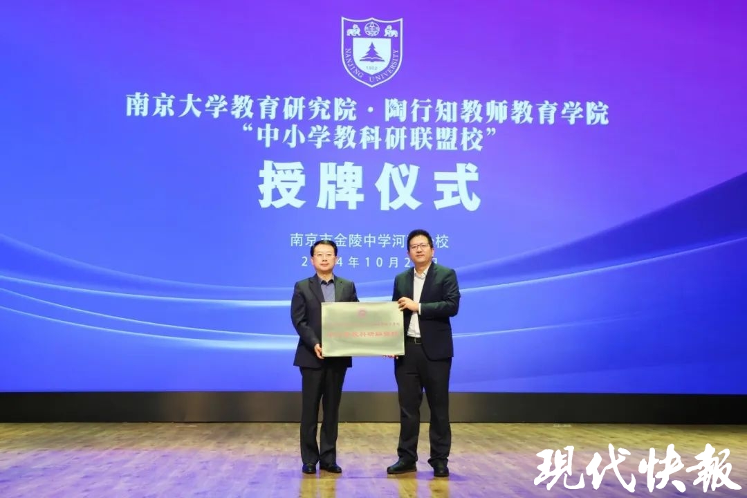 在学校发展、教师成长的路上,金中河西分校得到了凯发k8官网教育研究院·陶行知教师教育学院的大力支持和帮助,学校成为凯发k8官网“教育博士与教育硕士实践基地”、凯发k8官网教育研究院·陶行知教师教育学院“中小学教科研联盟校”。活动现场,黄斌教授为金中河西分校授牌。