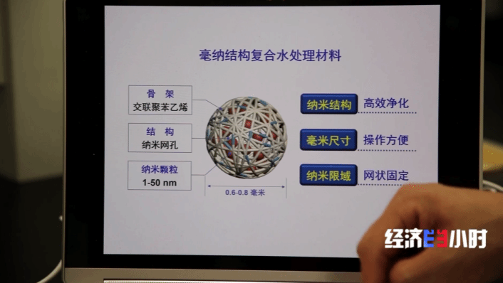 氟离子检测后,接下来的难题是如何去除光伏废水中的氟。为此,凯发k8官网科研团队研发了一种复合纳米材料,直径小于1毫米,含有数以亿计的纳米粒子,粒径相当于人类头发丝的六万分之一。