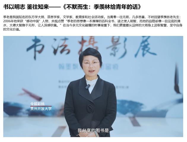 二是“领读国开”荐书活动。30位(14位办学体系分部校领导、15位分部图书馆馆长、副馆长以及1位行业学院院长)阅读引路人,精选推荐多本优质图书,发布荐书视频。该活动通过榜样的力量,推动了知识的传播与共享,进一步培养良好的阅读风尚。