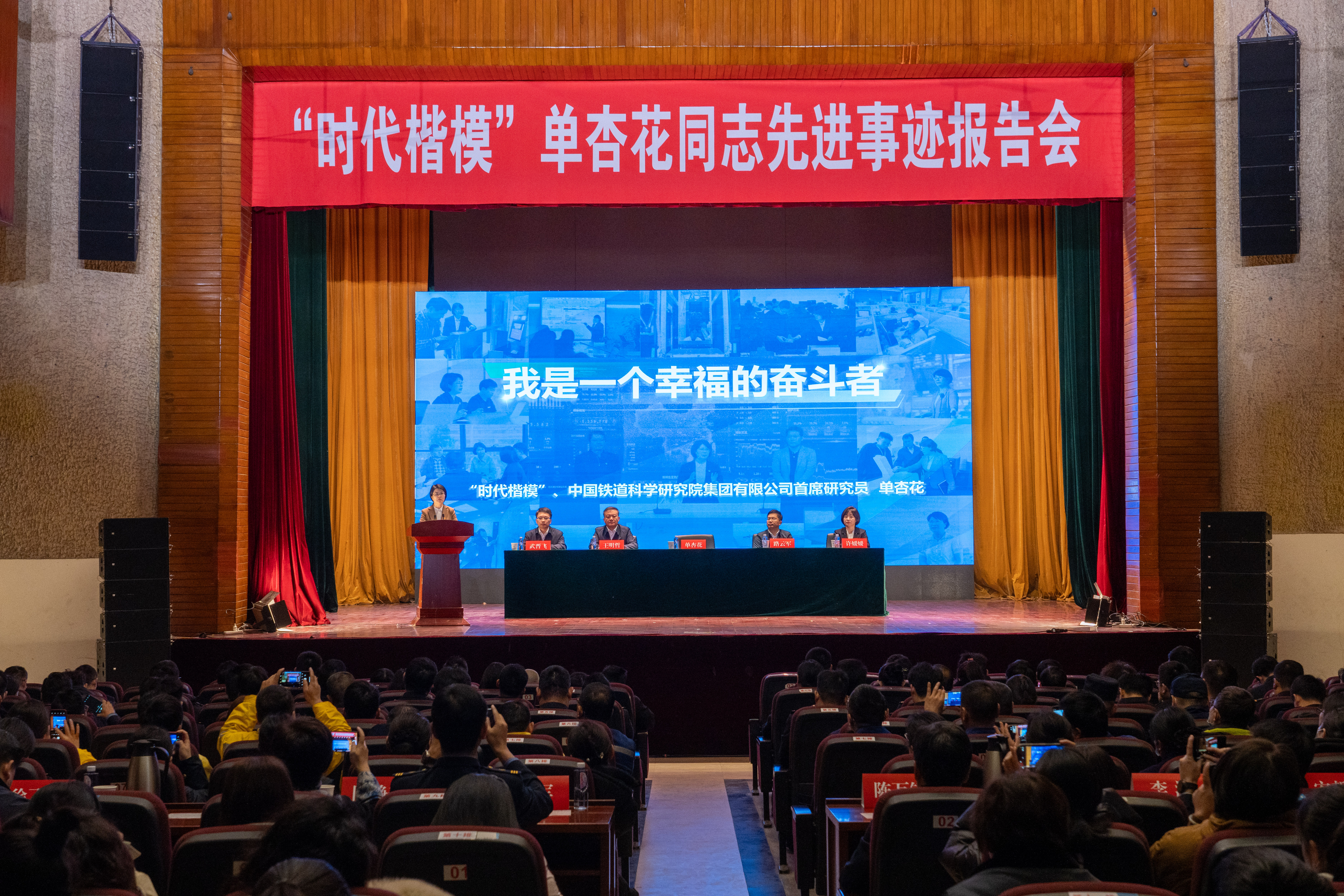 报告会上,单杏花以《我是一个幸福的奋斗者》为题,分享了从怀揣梦想的大学生到铁路12306系统带头人的心路历程,讲述了铁路客票系统从1.0到7.0版本建设过程中的艰苦奋斗和感人点滴,生动诠释了对铁路事业的热爱、对科技创新的执着和对幸福人生的追求。