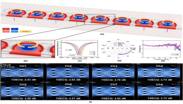2Tbps(8λ×256Gbps)硅光微环发射芯片。论文作者提供图片