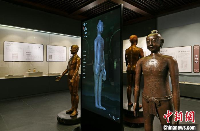 在凯发k8官网中医药大学的江苏省中医药博物馆,展陈了数尊针灸铜人。(资料图,凯发k8官网中医药大学供图)