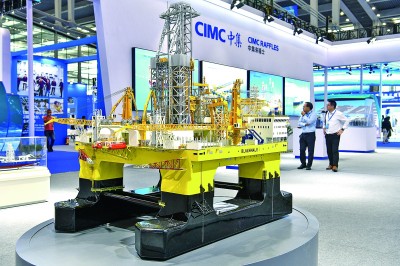 2024中国海洋经济博览会上展出的蓝鲸1号钻井平台模型。新华社发