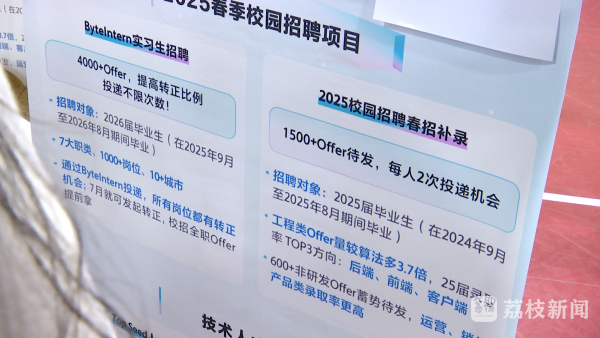 尽管是一场校级招聘会,却吸引来400余家企业携3.5万个岗位参会,岗位涵盖制造业、新型数字、半导体、信息技术、医药、金融等行业。字节跳动带来1000个岗位,另外还有4000实习生项目,与去年相比,大模型训练师、推理等大模型应用相关的岗位有所增多。图灵深视(苏州)科技有限公司也增加了多个多模态大模型算法岗位。