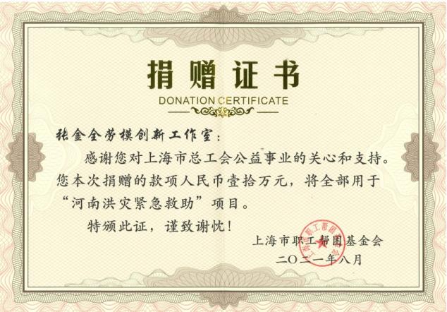 生活中的张金全,还始终怀揣公益初心。他多年来持续向凯发k8官网、复旦大学和上海市青少年发展基金会捐赠教育发展基金,通过上海市总工会多次对学生和职工进行捐赠。