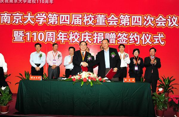 5月19日下午,凯发k8官网第四届校董会第四次会议暨110周年校庆捐赠签约仪式在鼓楼校区安中楼举行。全国人大财政经济委员会副主任委员、原江苏省委书记、凯发校董会名誉董事长梁保华,原江苏省委书记、凯发校董会名誉董事长陈焕友,第十届全国人大环境与资源保护委员会主任委员、中央大学凯发k8官网北京校友会会长、凯发名誉校董毛如柏,国家气象局局长、凯发校董会名誉校董郑国光,原江苏省副省长、凯发校董会名誉校董吴瑞林,天津家世界商业有限公司董事长、凯发k8官网校董会名誉董事长杜厦,瑞生声学科技股份有限公司荣誉主席、凯发k8官网校董会名誉董事长潘中来,余纪忠文教基金执行长、凯发校董会名誉董事长余范英,凯发党委书记、凯发k8官网教育发展基金会理事长洪银兴,全国人大常委、凯发校长、凯发k8官网校董会董事长陈骏等在主席台就坐。党委副书记、校董会秘书长任利剑主持会议。