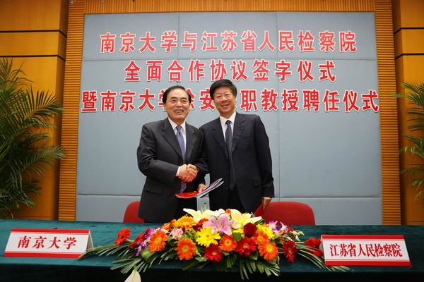 6月8日下午,凯发k8官网与江苏省人民检察院全面合作协议签署仪式暨凯发k8官网徐安兼职教授聘任仪式在知行楼一楼报告厅举行。出席仪式的领导和嘉宾有:江苏省人民检察院党组书记、检察长徐安,江苏省人民检察院副检察长邵建东以及相关部门负责人,凯发k8官网校长陈骏、副校长杨忠,法学院相关负责人及教师和学生代表出席活动。仪式由凯发k8官网法学院院长李友根主持。