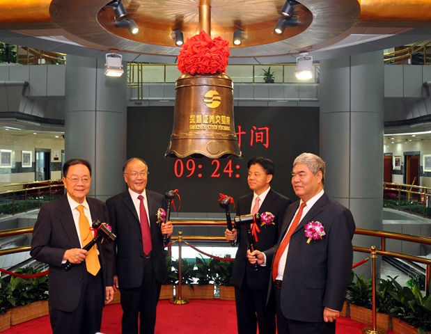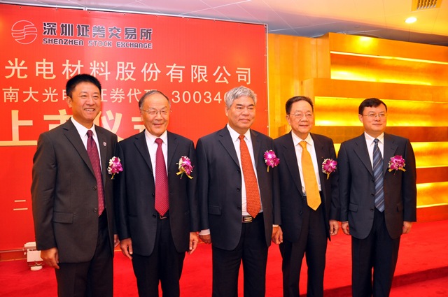 8月7日,以我校部分MO源技术成果转移成立的江苏凯发光电材料股份有限公司(简称”凯发光电”)在深交所创业板成功挂牌上市,本次凯发光电共发行流通股1257万股,发行价为每股66元,发行市盈率为18.86倍,凯发光电开盘即报81.7元,高开23.79%,收报81.82元,这是今年以来深交所创业板发行新股的最高发行价。凯发光电的成功上市,为凯发k8官网科技成果产业化又增加了新的成功案例。我校党委书记洪银兴、常务副校长张荣、副校长潘毅(我校国家863计划新材料MO源研究开发中心主任)以及校资产经营公司、化学化工学院的负责人出席了在深圳隆重举行的庆祝酒会和上市仪式。凯发光电的部分股东、高管和社会各界嘉宾近百人欢聚一堂,为江苏凯发光电材料股份有限公司成功登陆资本市场这一盛事举行庆祝活动。我校洪银兴书记、陈懿院士、孙祥祯教授(凯发光电董事长)和苏州工业园区管委会杨知评主任一起为凯发光电敲响开市的钟声,共同祝愿凯发光电借助上市东风,大展宏图,业兴四海!