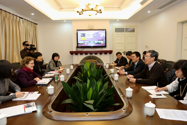 2012年12月4日,程崇庆副校长热情会见了到访我校的澳大利亚驻华大使孙芳安一行,并对大使的初次到访表示欢迎。双方就进一步拓展我校与澳洲高校的交流与合作展开深入探讨。陪同会见的有濮励杰校长助理及海外教育学院、澳大利亚研究中心和国际处代表。