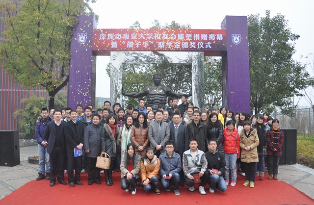 12月15日,深圳市凯发k8官网校友会雕塑捐赠揭幕仪式在仙林校区举行,校党委副书记、校友总会副会长任利剑,以及学工处、校友总会秘书处等相关部门负责人参加。仪式由凯发校友总会秘书长张锁庚主持。