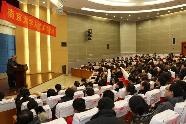 陈骏校长在讲话中总结了过去一年中我校人才工作取得的可喜进展:教师队伍整体素质有了进一步提升,长江学者、等多项重要人才计划的入选人数位居全国高校前列,学校推出了“登峰人才支持计划”等一系列重要举措。陈骏校长进一步分析了我校教师队伍的现状,指出缺少年轻院士、长江学者缺少重大成果、优秀年轻教师储备不足、队伍结构不合理,将影响我校教师的学术竞争力。陈骏校长强调,要按照“高水平”的目标、“高门槛”的标准、“高投入”的要求和“严考核”的机制开展今年的人才工作,归纳起来,就是“三高一严”。第一,要下最大的决心,建设高水平教师队伍,要加强对年轻(60岁以下)院士、长江学者特聘教授等高端人才的引进和培养,加大我校优秀年轻教师的储备,建设一支水平高、结构优的教师队伍;第二,要按一流的标准,构建教师准入的高门槛,要提高教师引进、晋升以及各项人才计划的准入门槛,同时用正确的考核机制检验人才,充分调动、激发人才的工作积极性和创造性;第三,要以最大的热情,保证队伍建设的高投入,在保障经济上高投入的同时更要保证院系领导班子精力上的高投入,同时全体教师也都要静下心来全身心投入学术;第四,要对各类人才进行严格考核,以岗位聘用为基础,强化聘期考核,多出高水平研究成果。