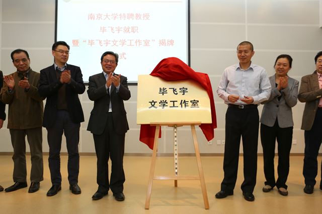 毕飞宇、杨忠、徐兴无共同为“毕飞宇文学工作室”揭牌。