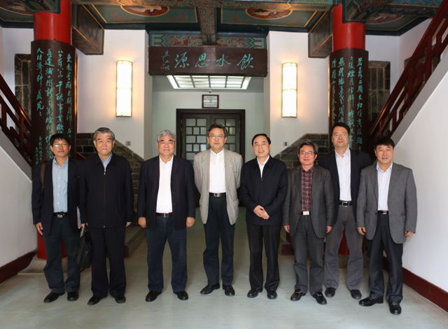? ? ? 座谈会后,我校洪银兴书记、陈骏校长、杨忠副校长与龚克校长一行在北大楼内合影留念。