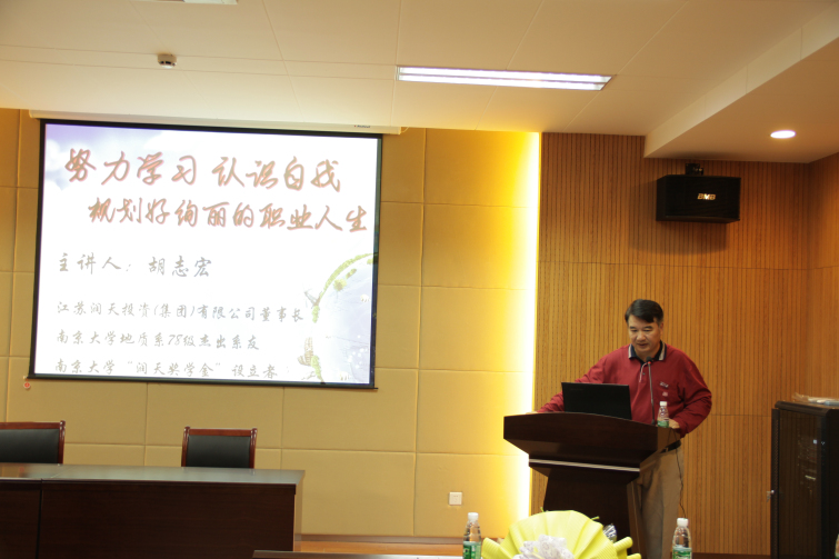 授聘仪式结束后,胡志宏教授为大家做了一场题为《努力学习,认识自我,规划好绚丽的职业生涯》的精彩讲座。他提到大学期间要着重学习的三个方面的内容:学立志,学做人,学知识(业务能力)。“学立志”就是要形成自己的人生观和价值观,进而形成自己的目标。有志向、有追求、有理想,才能塑造自己的职业人生。在“学做人”的问题上,胡志宏说,自己在创业初期虽然经济拮据,却默默承受了一笔生意的巨大损失,没想到他诚实守信的待人方式让他很快赢得了更多的客户,生意迅速步入正轨。生意如此,做人更是如此,胡志宏认为学会严于律己、宽以待人是学做人的核心部分,并以此勉励青年学子要有诚实守信的品质。关于学习,胡志宏说,大学学习中,学习是载体,重点是要培养学习能力,而自己就是在多年做学问的过程中逐渐培养出发现问题、分析问题、解决问题的能力,这种能力渗透在社会的各个角落。他还用自己经商的几个案例阐释了这种能力对于获取成功的重要性。(地科院)
