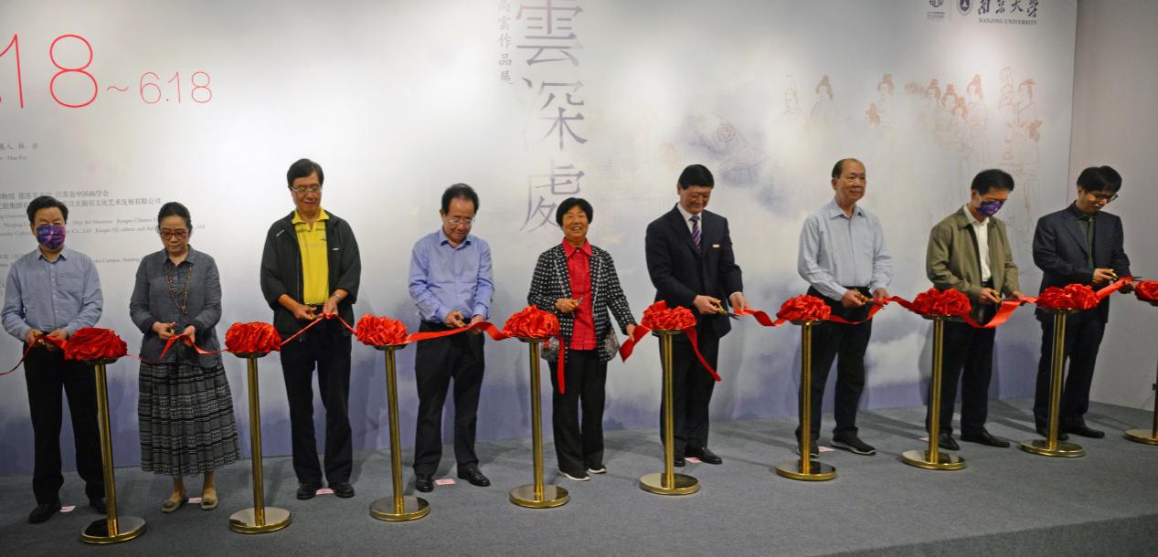 开幕式上,张连珍、胡金波、李全林、罗一民、潘瑞吉、汪晓荣、章剑华、龚良、孙晓云共同为"云深处——高云作品展"开幕剪彩。