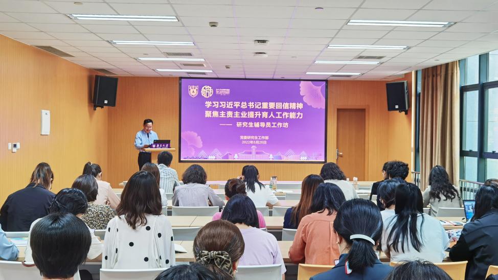 5月25日上午,"学习习近平总书记重要回信精神 聚焦主责主业提升育人工作能力"研究生辅导员专题培训会暨研究生辅导员工作坊活动在仙林校区举行。党委常委、党委研究生工作部部长周济林出席并讲话。党委研究生工作部副部长李宁主持,全体研究生辅导员参加。