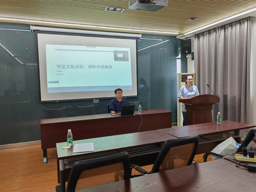 胡星铭以"如何坚定文化自信"和"如何讲好中国故事"两问切入,为师生们展开详实且深入的讲解。在"如何坚定文化自信"这一问题上,胡星铭从解读"何谓自信"开始,带领师生们厘清"文化自信"的内涵,即"文化自信"是对中国文化有准确的认识,并相信中国文化能够不断进步,不断完善,为世界做出贡献。基于此,胡星铭提出,我们应当把文化自信建立在既深入学习中国文化、又深入了解西方文化,具有独立思考的能力和真正看到中国文化的优点与进步的能力的基础上——只有这样的自信才是理性、长久而坚定的。
