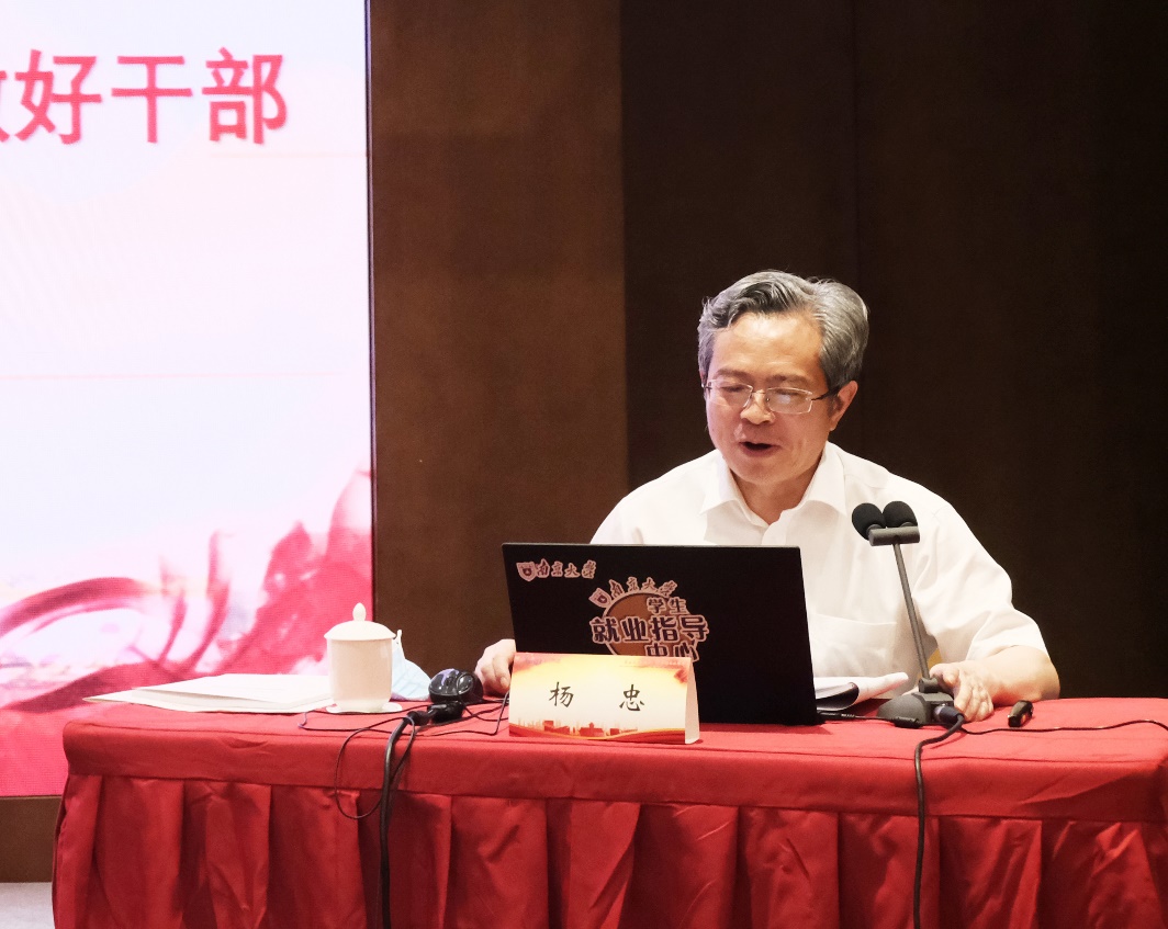 杨忠以"铸就初心,学深悟透,提升能力——跟习近平总书记学做好干部"为题,与选调生校友进行了现场交流。他以习近平总书记的成长经历和六次中青班讲话为线索,围绕"知、信、行"三个方面和"铸就初心、学深悟透、政治能力、调查研究能力、科学决策能力、改革攻坚能力、应急处突能力、群众工作能力、抓落实能力"等九点要求,结合习近平总书记在地方工作四十余年间的典型事迹,对青年干部成长规律和能力要求进行了深入浅出的讲解,为选调生校友的成长和发展指明了努力的方向,提供了实践的路径。