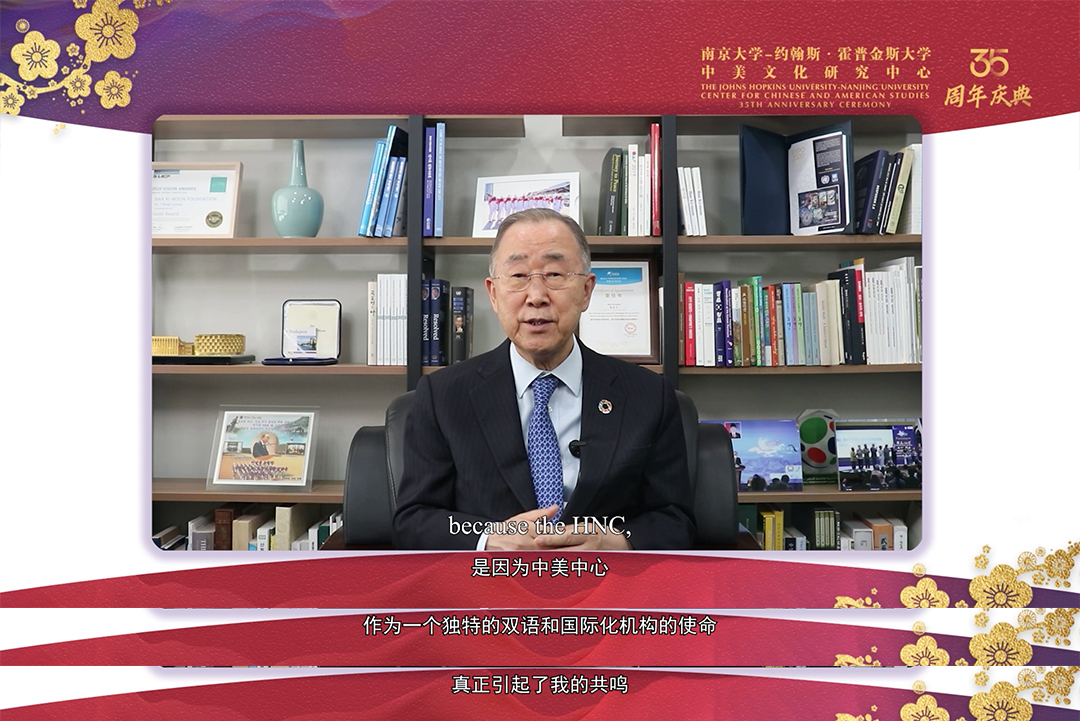 6月18日,凯发k8官网-约翰斯?霍普金斯大学中美文化研究中心(以下简称 " 中美中心 ")成立35周年庆典在线上直播举行。联合国第八任秘书长、博鳌亚洲论坛理事长、凯发k8官网名誉博士潘基文,中国科学院院士、凯发k8官网校长吕建,副校长王振林,约翰斯·霍普金斯大学校长段荣宁(Ronald J. DANIELS),约翰斯·霍普金斯大学高级国际问题研究所(英文简称"SAIS")院长吉姆?斯坦伯格(Jim STEINBERG)等嘉宾出席典礼。庆典由中美中心中方主任从丛和美方主任魏亚当(Adam K WEBB)通过ZOOM 会议室在线共同主持,南播玩APP同步转播。来自世界各地的中美中心师生、校友以及关心中美中心事业发展的各界人士汇聚云端,共同见证这一隆重时刻。