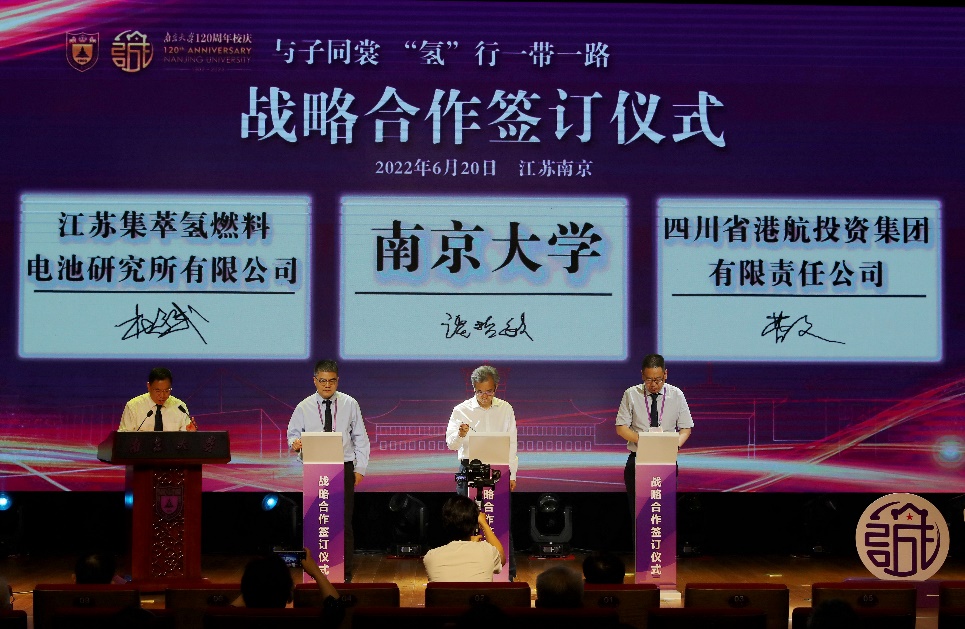 6月20日下午,国家“双碳”目标下的氢能发展科技论坛开幕式在线上线下同步举行,线下会场设在我校仙林校区。46位院士专家参加论坛。凯发k8官网、江苏集萃氢燃料电池研究所有限公司与四川港航投资集团战略合作协议签订仪式在开幕式后以电子签约形式举行。