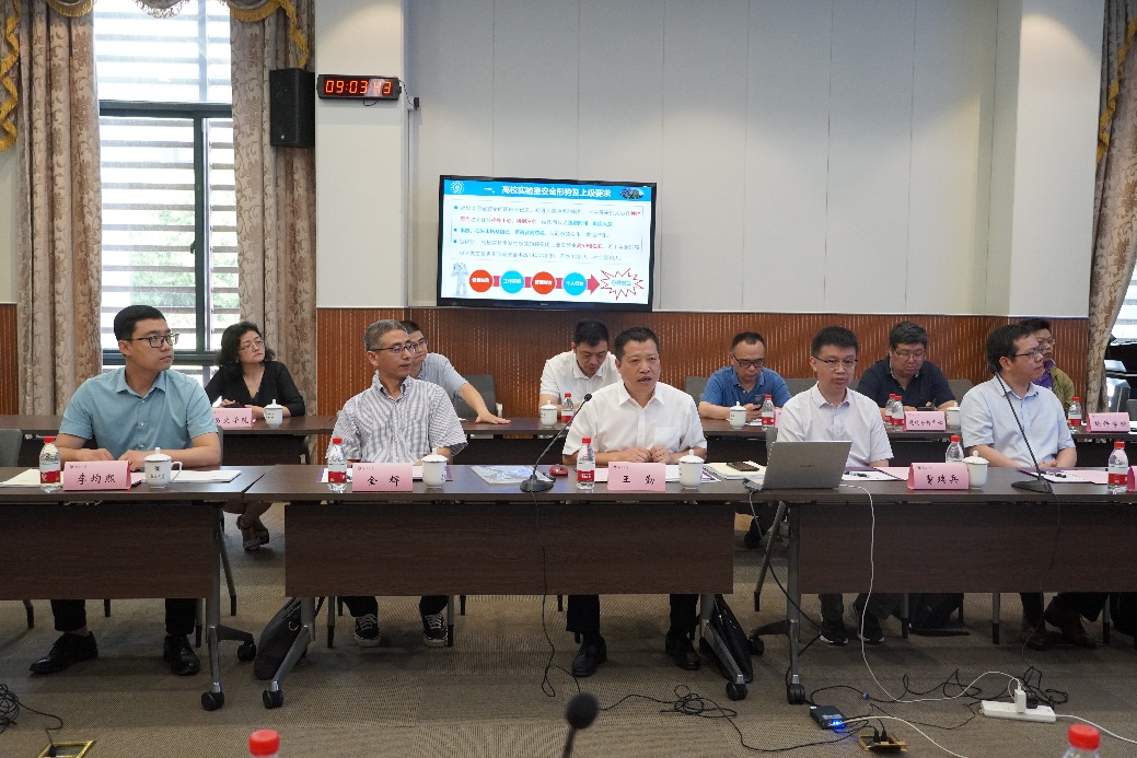 检查组组长王勤介绍了当前高校实验室安全形势及上级要求,阐述了本次检查重点,并对本次现场检查工作程序与要求做出了具体的布置和说明。