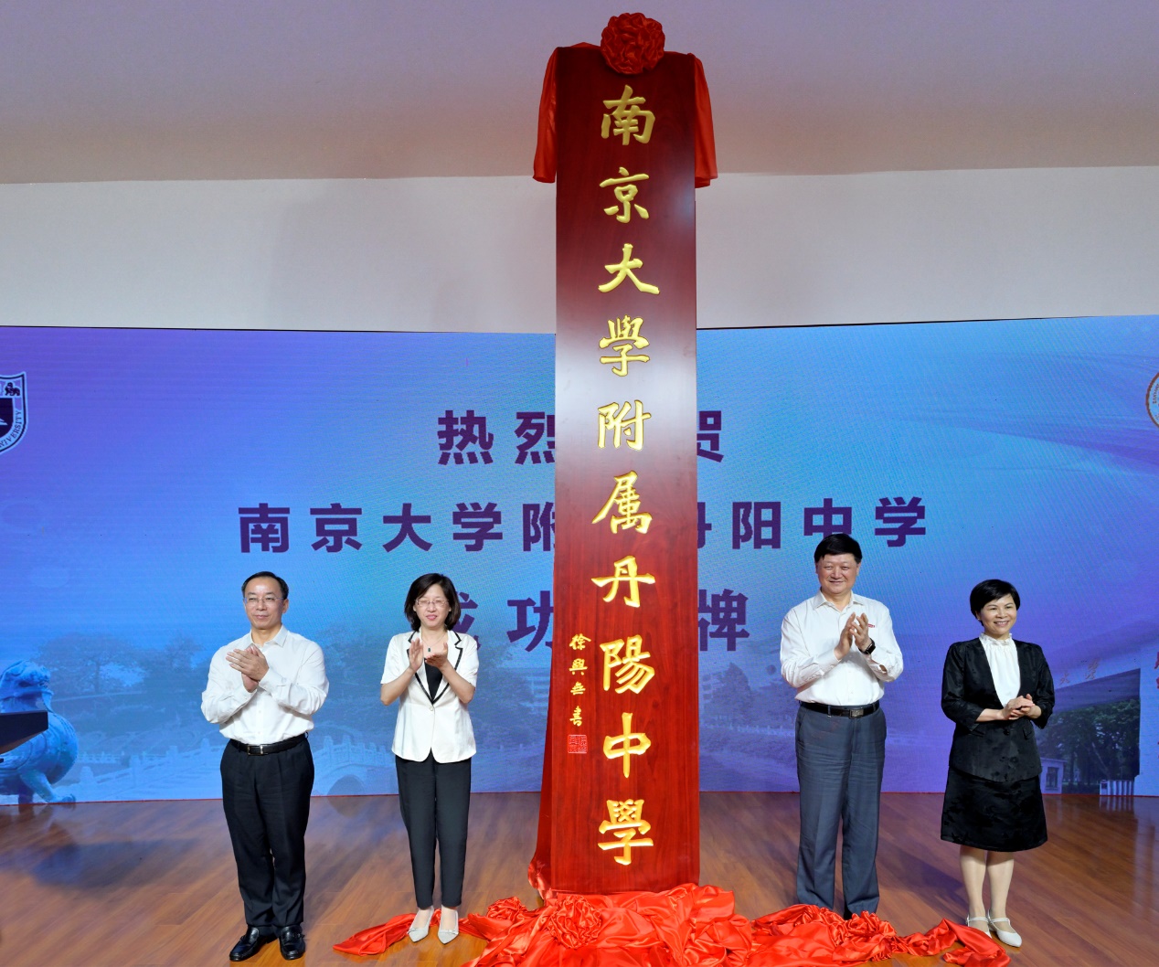 胡金波、顾月华、殷敏、王成明共同为凯发k8官网附属丹阳中学揭牌。