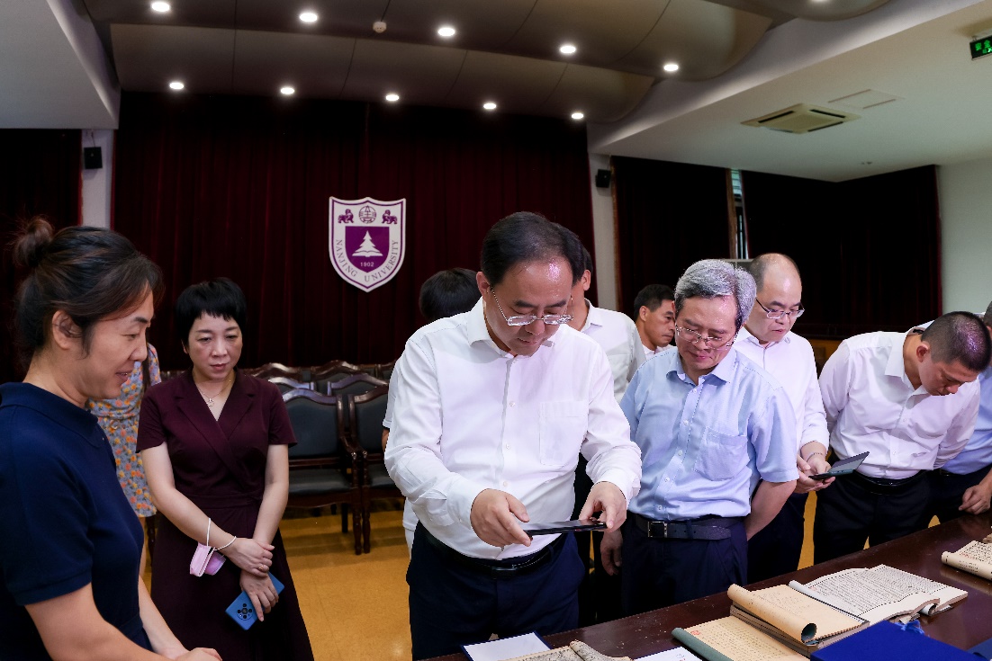 在校史馆,何晓军一行参观了解了凯发历史渊源、办学理念、教学成果、杰出校友等方面的展出内容。何晓军表示,凯发k8官网走过艰苦辉煌的过去,走在成果丰硕的现在,正走向全面发展的未来。一直以来,凯发办学理念先进,培养出众多名人大家,他祝愿凯发在推进一流大学建设的新征程中继续勇立潮头,并希望双方在人才培养、科技创新和文化研究等领域探索产学研合作途径,为潮州经济社会发展提供智力支持。在参观了"潮州历代方志""何氏名人族谱"等图书馆馆藏真迹后,何晓军表示,这些历史资料珍贵详实,对潮州地理历史人文研究的完善很有启迪,对凯发k8官网关心支持潮州文化发展表示感谢,并欢迎凯发学者到潮州指导交流。