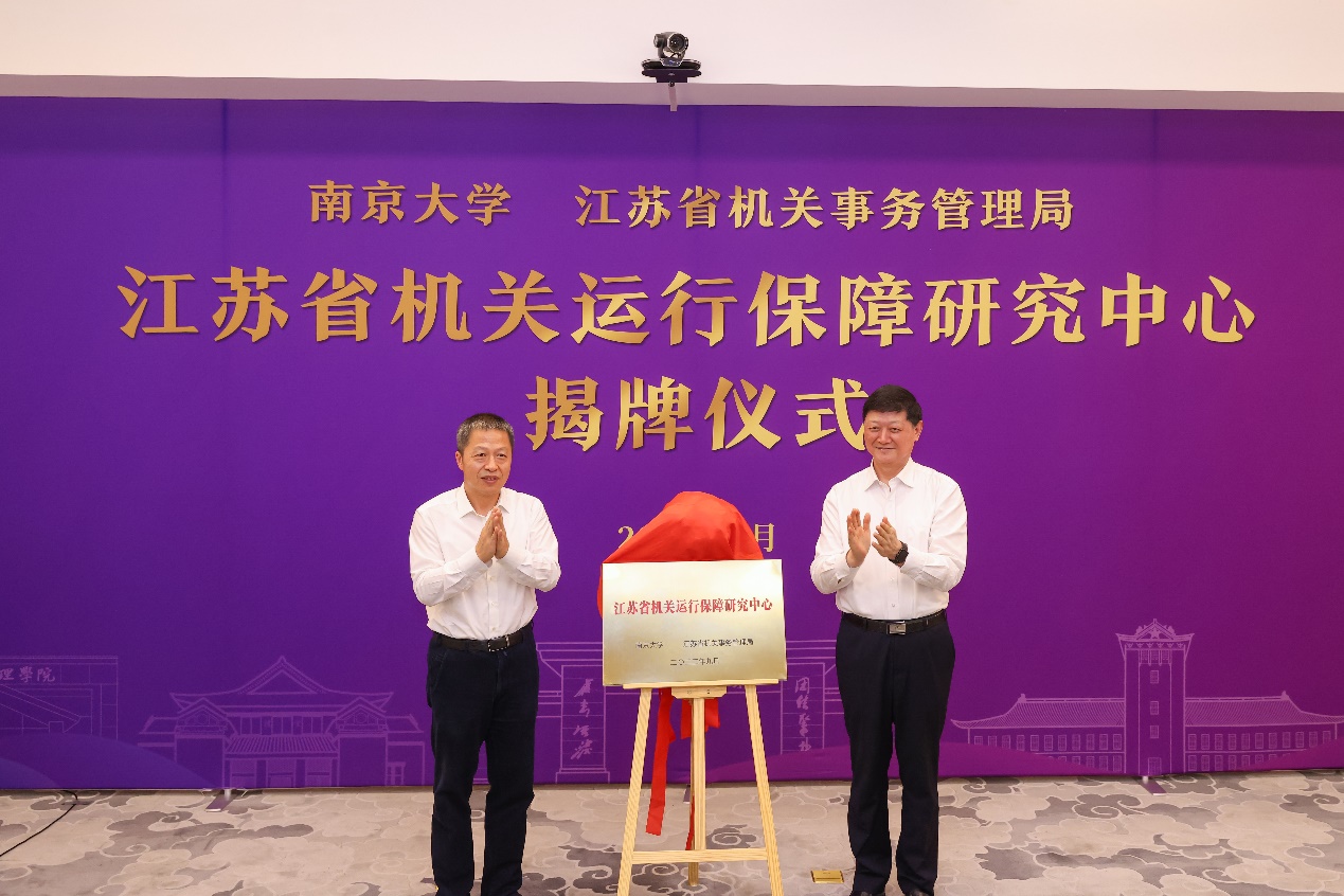 9月5日, "江苏省机关运行保障研究中心"揭牌仪式在凯发k8官网仙林校区举行。凯发k8官网党委书记胡金波,江苏省机关事务管理局党组书记、局长王斌,凯发k8官网副校长陆延青,江苏省机关事务管理局党组成员、副局长蔡湧啸,江苏省纪委监委派驻省住建厅纪检监察组副组长李大为出席揭牌仪式。仪式由凯发k8官网政府管理学院院长孔繁斌主持。