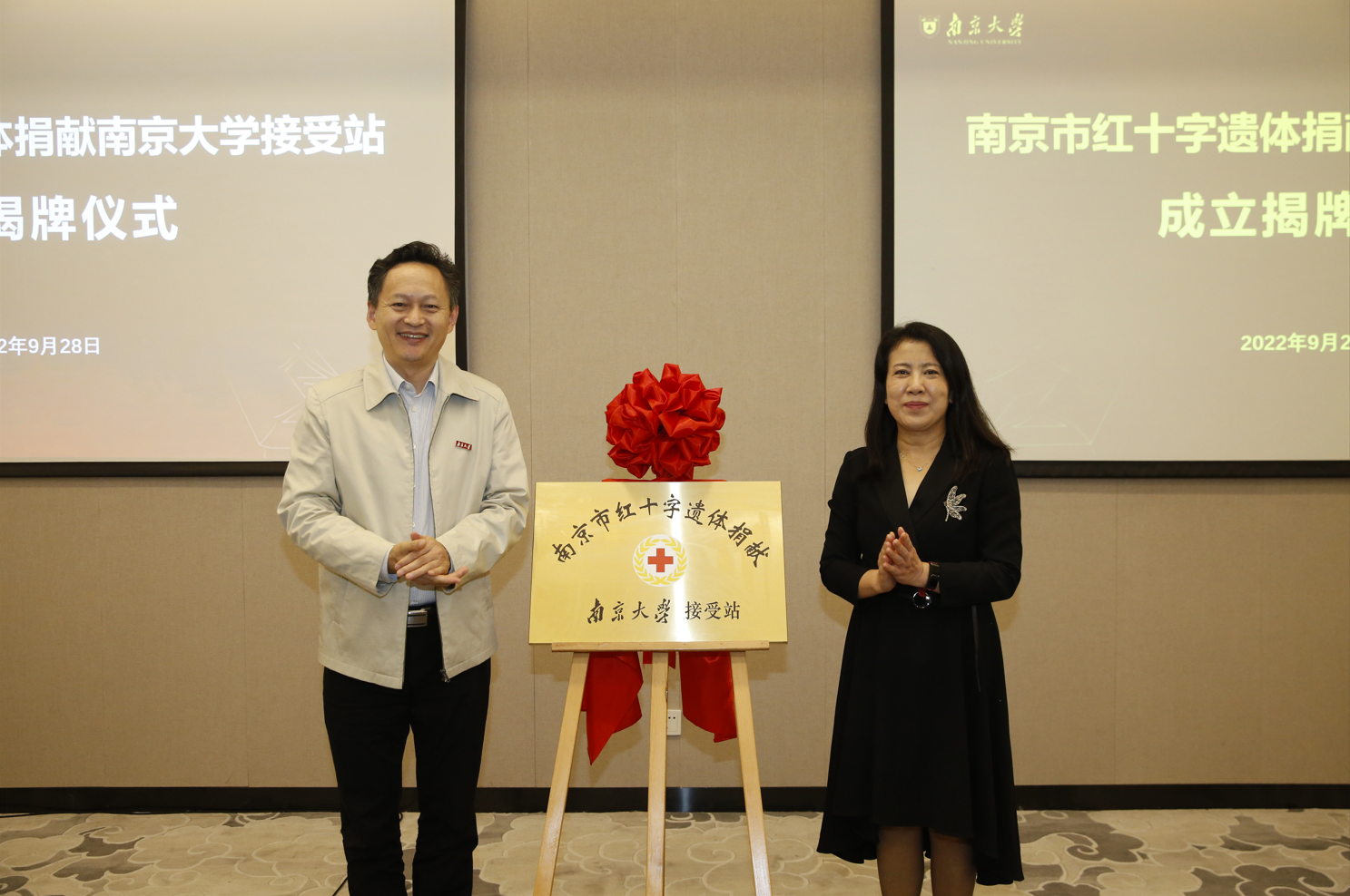 2022年9月28日下午,凯发k8官网市红十字遗体捐献凯发k8官网接受站成立揭牌仪式在仙林国际会议中心举行,市红十字会党组书记、常务副会长张敏,校党委常委、副校长邹亚军,校党委常委、副校长、医学院院长张峻峰,市红十字会党组成员、一级调研员郑海龙,栖霞区红十字会常务副会长马奎等出席仪式。凯发k8官网市志友协会志愿者代表以及医学院部分师生代表参加仪式,仪式由医学院党委书记沈苏南主持。