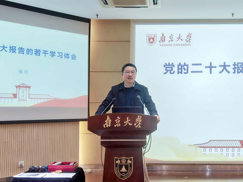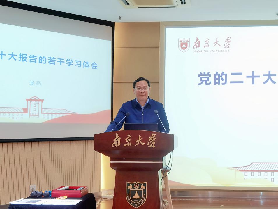 10月21日上午,研究生院、党委研究生工作部在仙林校区组织召开党的二十大精神专题学习会。哲学系教授、博士生导师、研究生院副院长张亮做学习分享。研究生院、党委研究生工作部全体工作人员,全校各院系研究生秘书、教务员、辅导员参加学习。校党委常委、党委研究生工作部部长、研究生院常务副院长周济林主持会议。