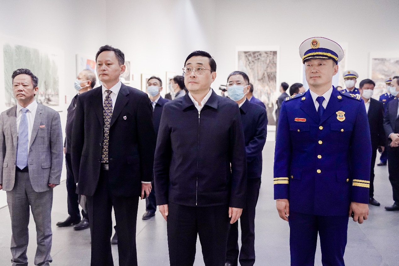 仪式之前,费高云与邹亚军共同参观了"学习贯彻习近平总书记授旗训词精神四周年文化作品展"。