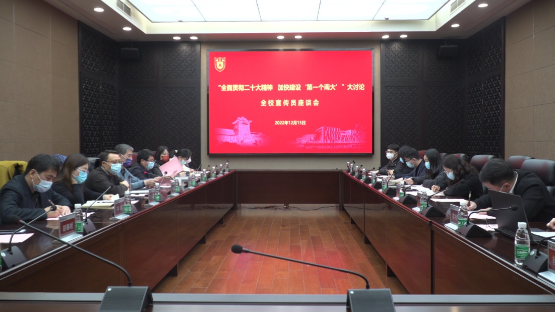 12月15日下午,"全面贯彻二十大精神,加快建设‘第一个凯发’大讨论" 全校宣传员专题座谈会议在仙林校区召开。本次会议旨在围绕"如何做好宣传工作、提升宣传效果、讲好凯发故事"建言献策。校党委常委、宣传部长陈云松主持会议并作总结讲话。