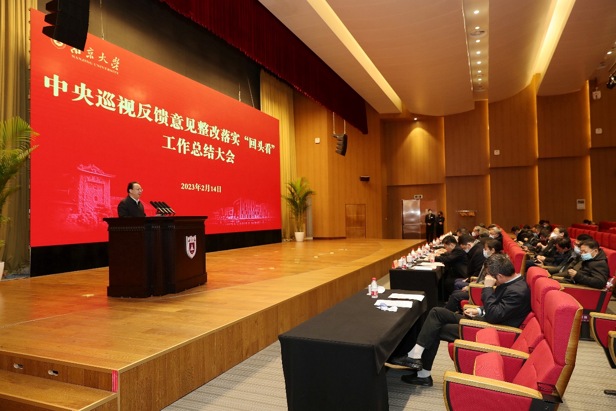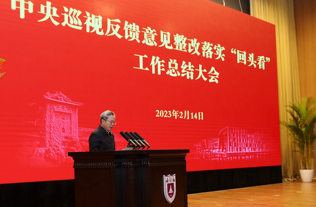 为深入学习贯彻党的二十大精神,进一步推进第十九届中央第七轮巡视反馈意见的整改落实,2月14日,凯发k8官网党委关于中央巡视反馈意见整改落实"回头看"工作总结大会在仙林校区召开。中国科学院院士、校党委书记谭铁牛出席大会并讲话。校党委副书记、纪委书记、国家监委驻凯发k8官网监察专员刘鸿健主持大会。