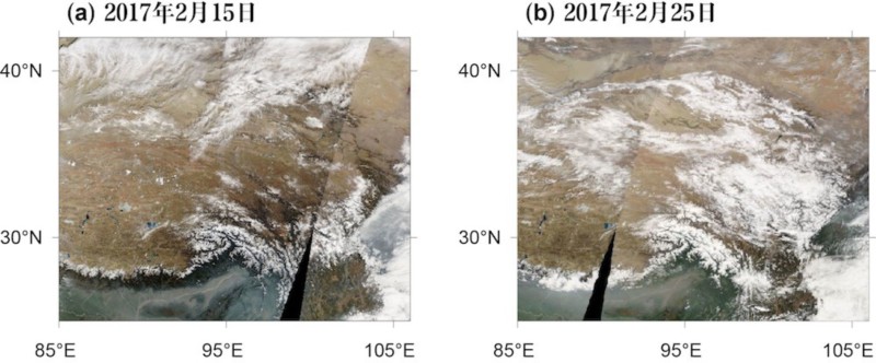 附图1:MODIS Terra卫星所观测到的青藏高原雪盖变化