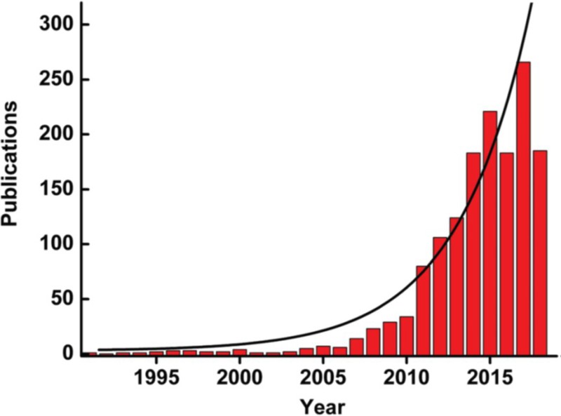 图2. 截止到2018年五月底纳米酶方面发表论文数量统计。所有数据来源于web of science。