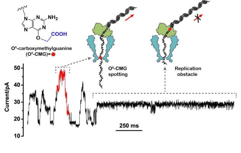 我校化学化工学院生命分析化学国家重点实验室黄硕课题组(http://hysz.www.xitupic.com/bionano/2.html)利用纳米孔测序技术在DNA鸟嘌呤的烷基化碱基损伤检测方法学研究中取得重要进展,于2019年4月25日在《德国应用化学》发表论文“Nanopore sequencing accurately identifies the mutagenic DNA lesion O6-carboxymethyl guanine and reveals its behavior in replication”(DOI: 10.1002/anie.201902521, 文章链接:https://onlinelibrary.wiley.com/doi/abs/10.1002/anie.201902521)。