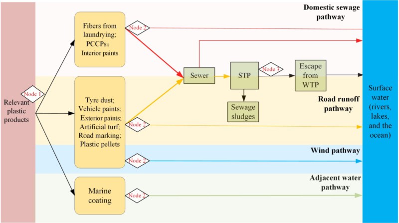 图3 初级源微塑料来源及其向水生系统排放的途径